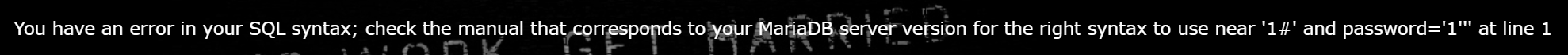 到输入这个的时候出现了下面的报错信息,至少让我们知道了sql的闭合条件’1’’’,去掉左右两边的单引号得到1’’,再去掉1’,得到闭合体条件就是一个单引号’