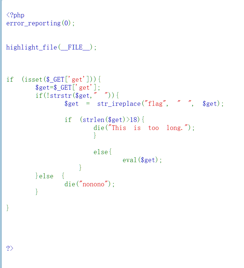 $get = str_ireplace(“flag”, “ “, $get);