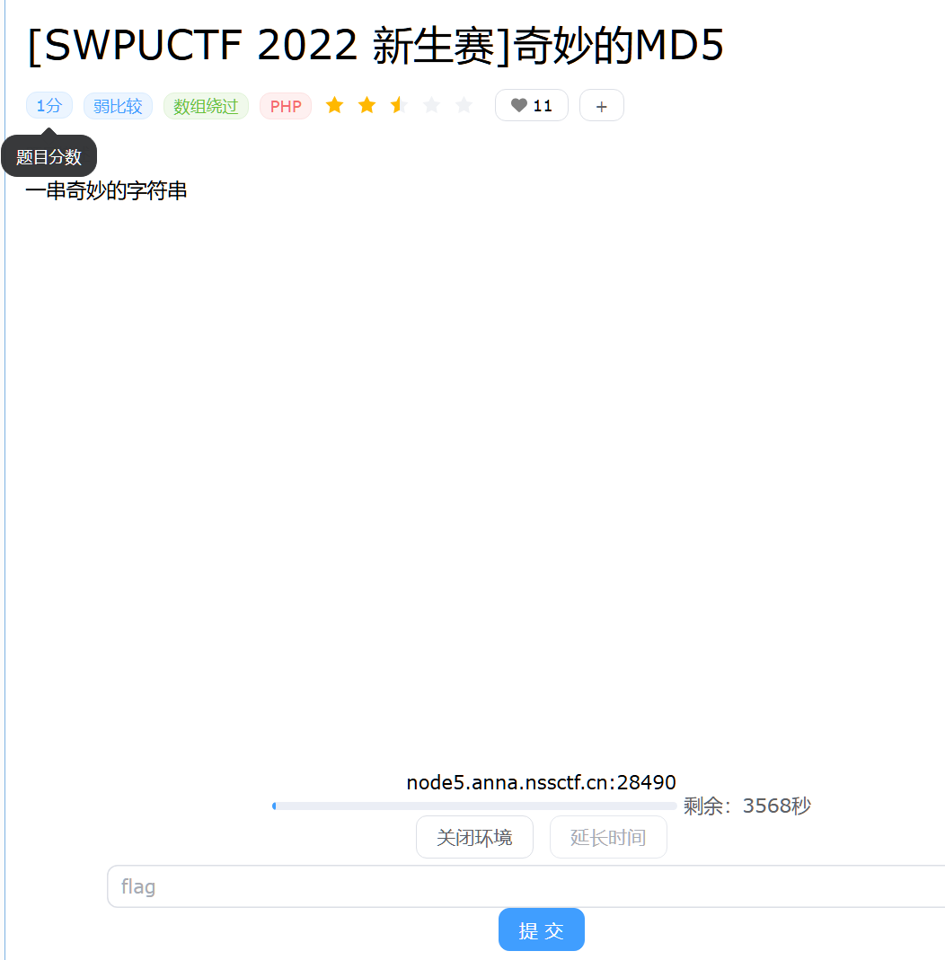 奇妙的字符串,又跟 MD5 有关,查了资料,找到了两个:一个是 MD5 加密后弱比较等于自身,这个字符串是 0e215962017 :