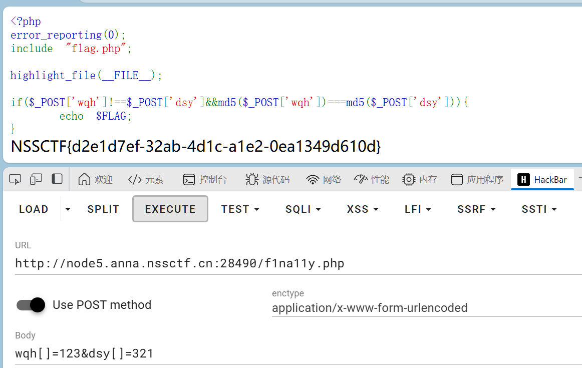 同样数组绕过,拿到flag:NSSCTF{d2e1d7ef-32ab-4d1c-a1e2-0ea1349d610d}