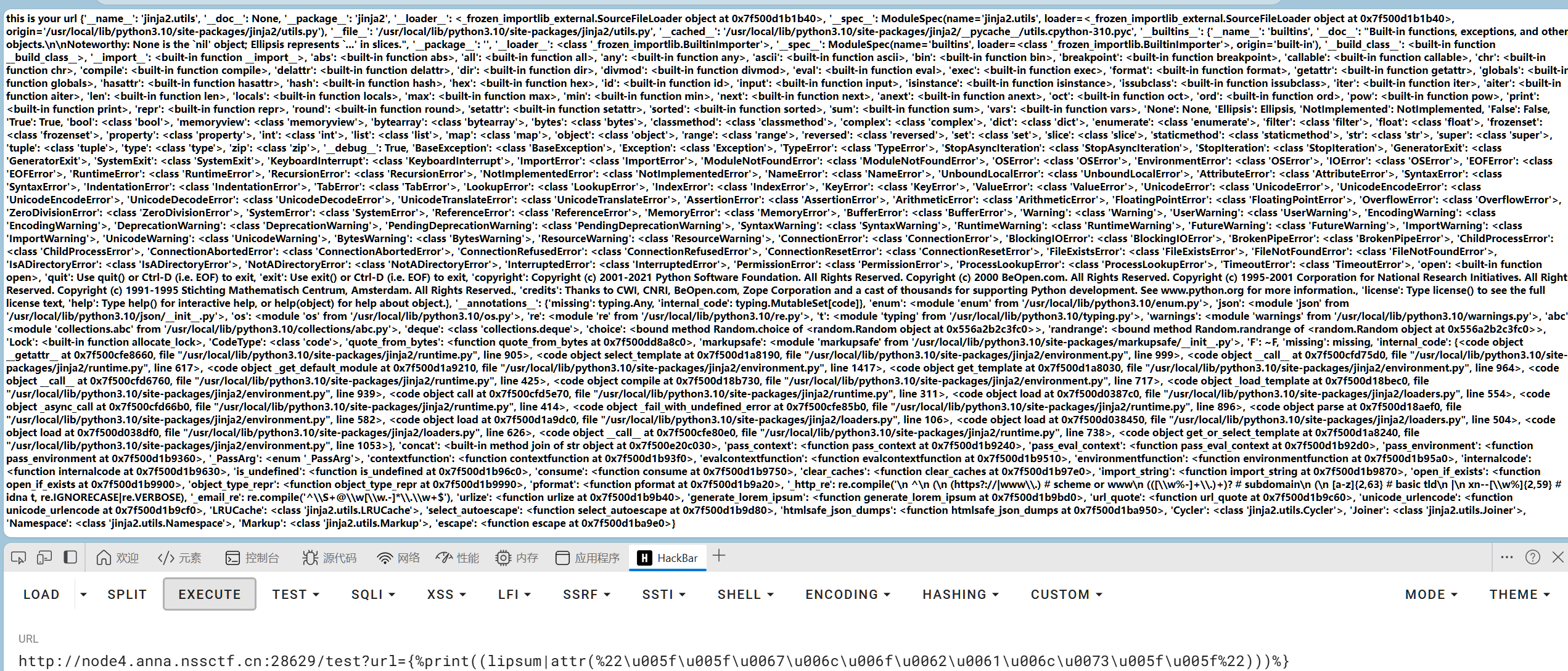 ③使用flask里的lipsum方法来执行命令:flask里的lipsum方法,可以用于得到__builtins__,而且lipsum.__globals__含有os模块