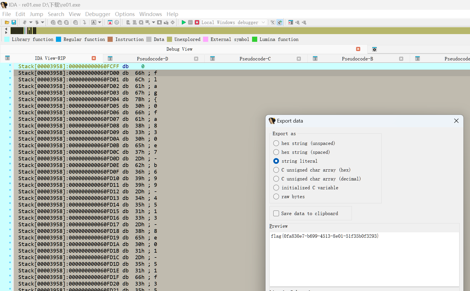 记得要选择string literal,直接就能看到flag,可以直接复制