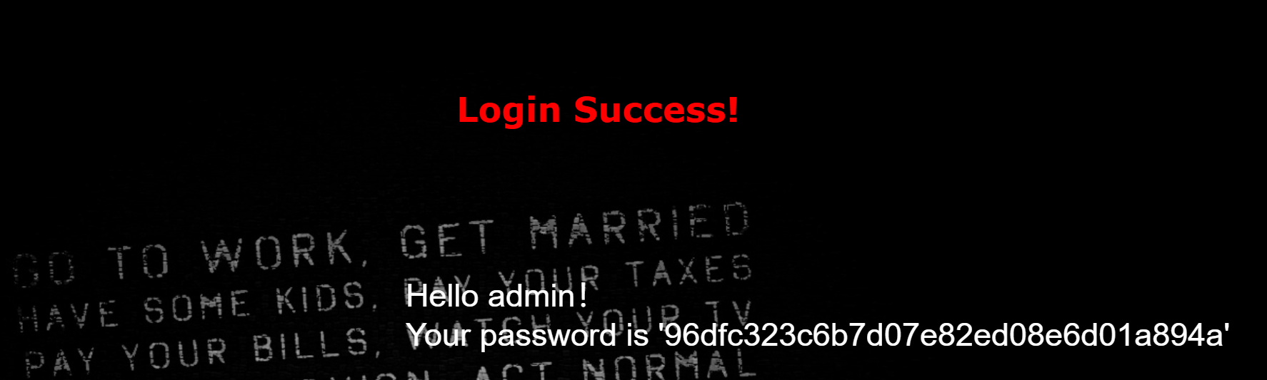 另一个是 MD5 加密后变成万能密码,这个字符串是 ffifdyopstyle=”color:#000000;”>0e215962017不行,ffifdyop才出现这个页面
