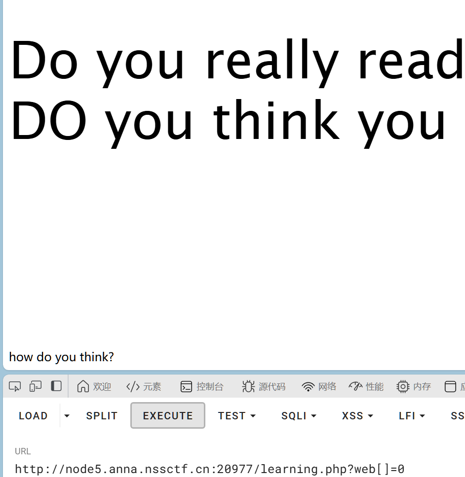 想着用之前写题的思路,使用数组绕过,下面有一行小字发生了变化,拷问我How do you think?应该是错了,