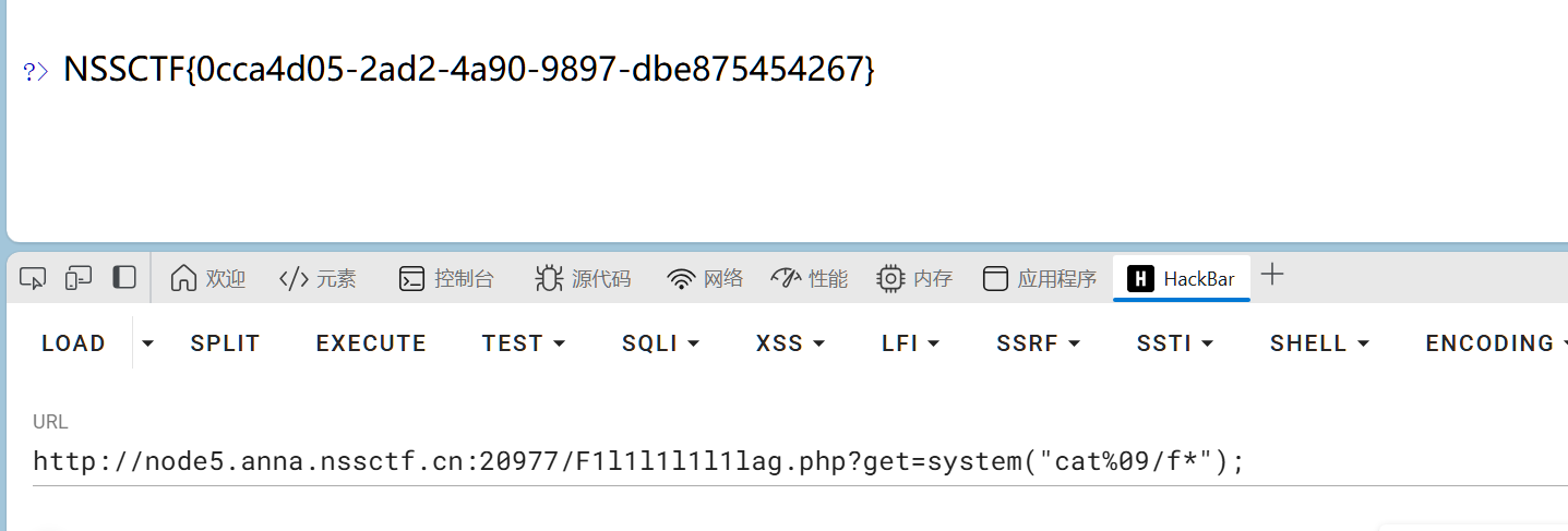 所以传入system(“cat%09/f*”);
